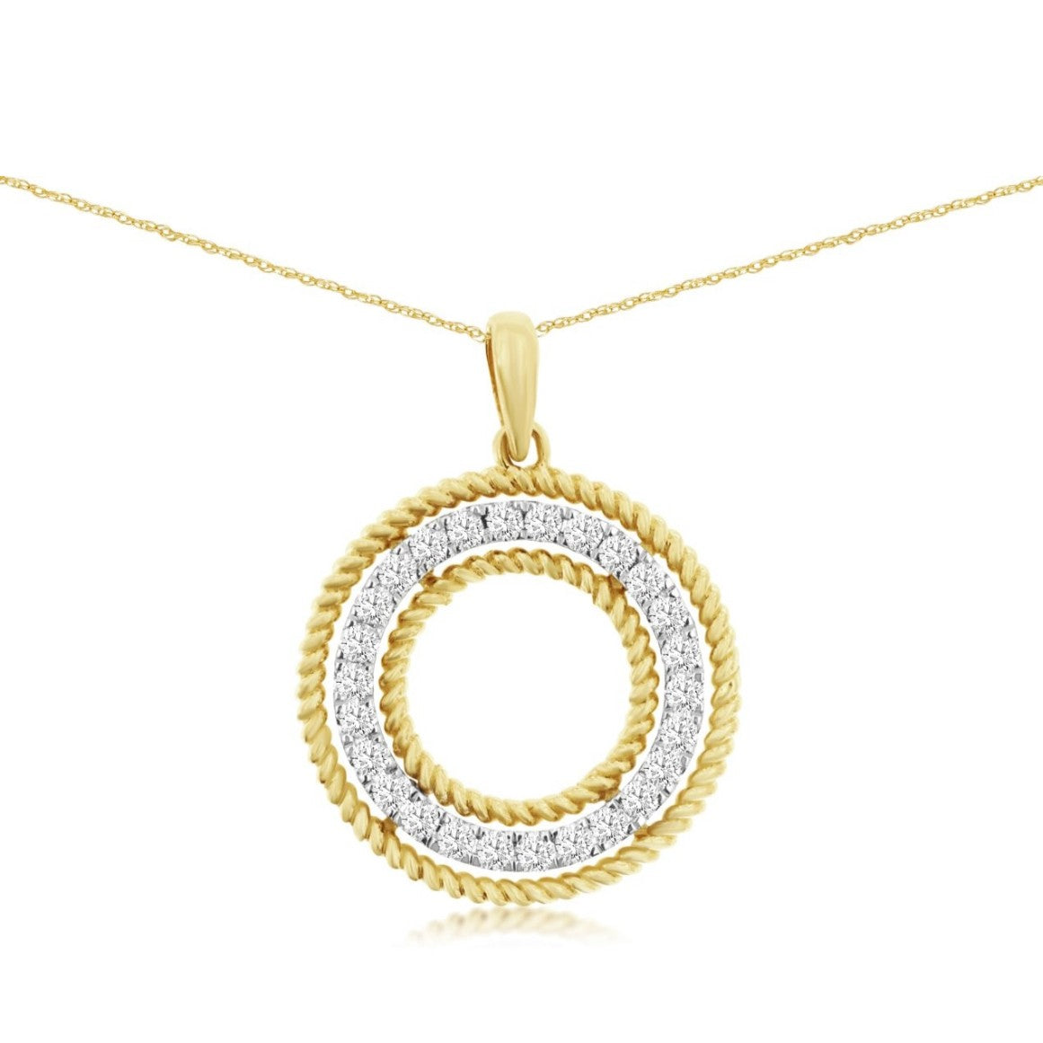 Diamond and Rope Border Open Circle Pendant
